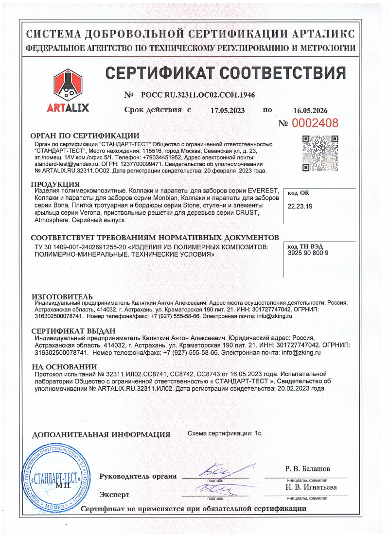 Сертификаты соответствия ZKING для Вологды